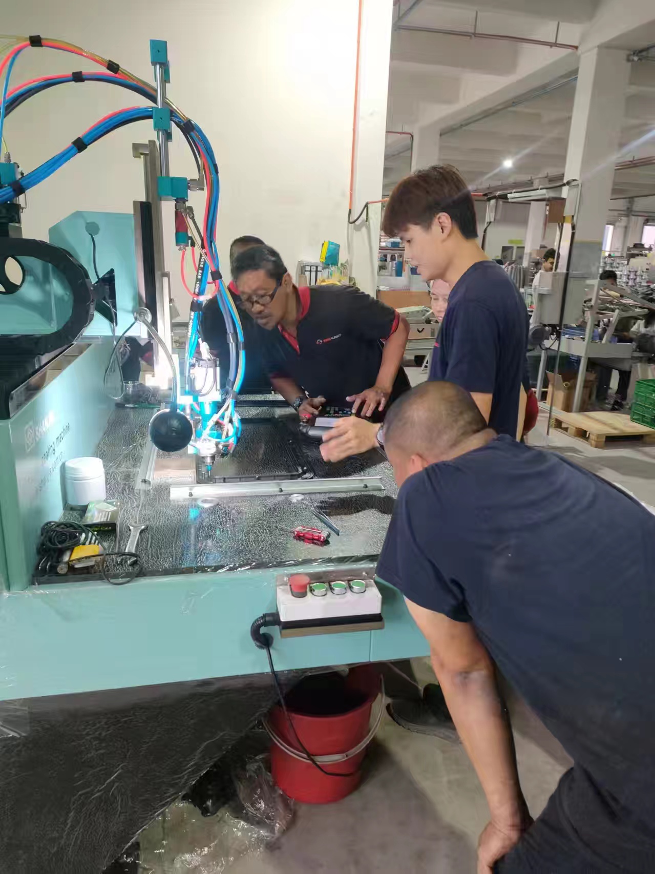 在這個充滿機遇與挑戰(zhàn)的時代,我們再次以卓越的產(chǎn)品實力和專業(yè)的服務(wù)態(tài)度,贏得了國際市場的認可與信賴!近日,來自東非明珠——肯尼亞的尊貴客戶,親臨我司生產(chǎn)現(xiàn)場,對我們的密封條點膠機進行了全面而深入的考察。